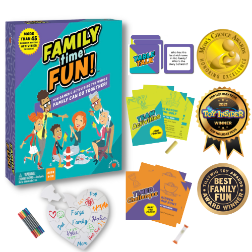 A boredom-busting activity kit with more than 45 game and activity ideas for the whole family! Ages 4-99+